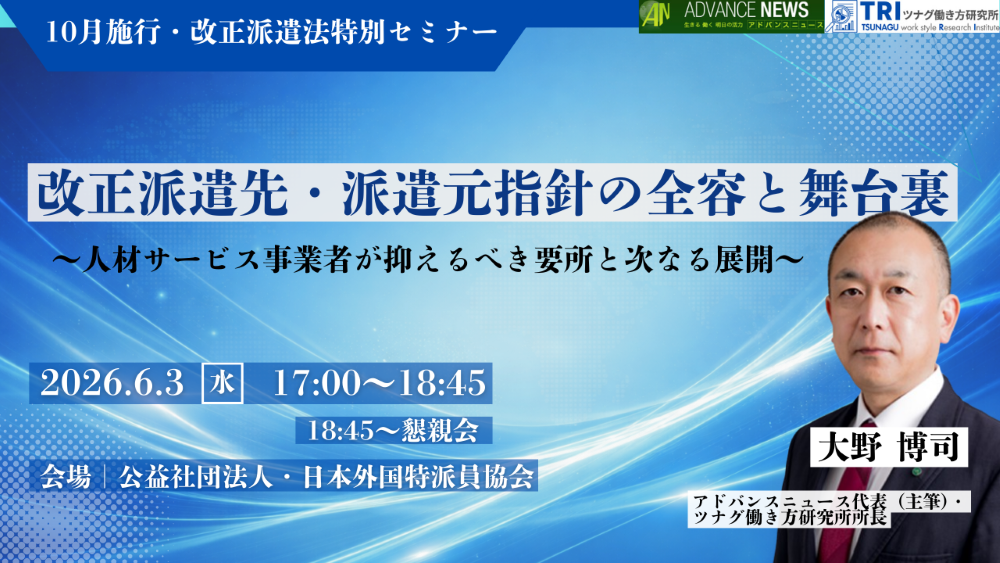 【セミナー開催案内】 アドバンスニュース×ツナグ働き方研究所主催のセミナーを開催します。
