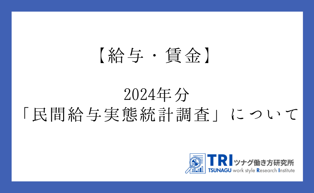 ツナグ働き方研究所は、労働法制の最新動向をウオッチしています。今回は、国税庁が発表した2024年分「民間給与実態統計調査」についてお伝えします。
