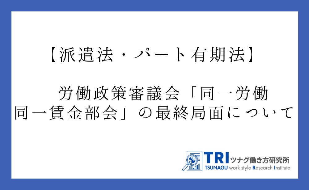 【労働者派遣法】同一労働同一賃金に伴う派遣法20年改正を総点検、労政審「同一部会」