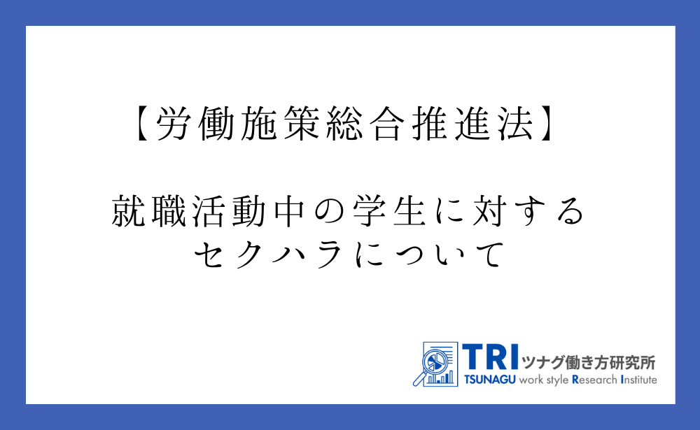 ツナグ働き方研究所は、労働法制の最新動向をウオッチしています。今回は、 カスタマーハラスメントと就職活動中の学生に対するセクシュアルハラスメントの動きについてお伝えします。