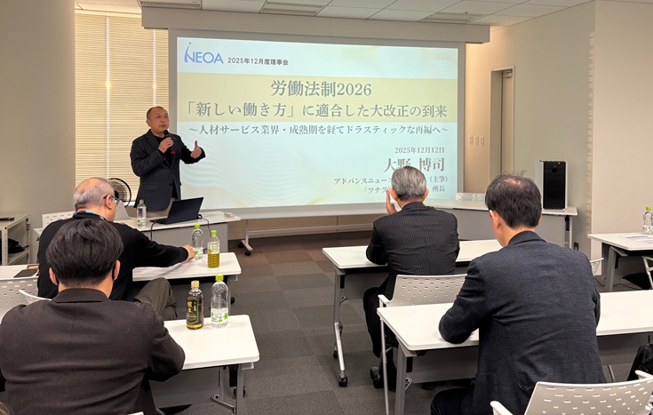 一般社団法人NEOA(エンジニア派遣・請負を担う技術提供サービスの事業者団体)の皆様を対象に講演しました。